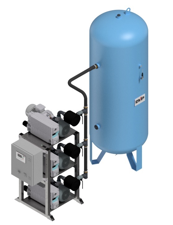 三個(gè)潤(rùn)滑真空泵配有電動(dòng)機(jī)和排油分離器過(guò)濾器,安裝在垂直開(kāi)發(fā)的支架上,以包含整體尺寸